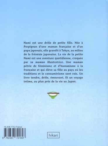 Nami est une drôle de petite fille. Née à Perpignan d'une maman française et d'un papa japonais, elle grandit à Tokyo, au milieu de la frénésie japonaise. La vie de la petite Nami est une aventure quotidienne, croquée par sa maman illustratrice. Une maman pétrie de féminisme et d'humanisme à la française et qui élève sa fille au pays où les traditions et le consumérisme sont rois. Un livre tendre, drôle, émouvant. Et un voyage intime, au plus près de la vie au Japon.