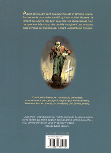 1919. Au sortir de la guerre, la société française peine à ménager une place aux anciens poilus devenus encombrants, et les trafics les moins glorieux vont bon train. Albert Maillard, modeste comptable qui a sauvé la vie d'Edouard Péricourt, jeune fils de bonne famille, juste avant la fin des combats, tente de les faire vivre de retour à Paris. Edouard, défiguré, refuse de reprendre contact avec les siens et imagine une gigantesque arnaque à la nation pour tenter de se projeter dans une vie nouvelle, ailleurs.