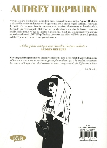 Découvrez la biographie intime d'Audrey Hepburn : "C'est sans aucun doute un des hommages les plus touchants qui a été produit sur maman", d'après le fils cadet d'Audrey Hepburn, Luca Dotti. Etoile du cinéma américain, icône de la mode depuis les années 1950, Audrey Hepburn a charmé le monde entier par son élégance naturelle et son regard pétillant. Pourtant, le destin n'a pas souri immédiatement à cette enfant élevée sous les bombes de la Seconde Guerre mondiale. Mal-nourrie, elle abandonne son rêve de devenir danseuse étoile, mais trouve refuge au théâtre et au cinéma. C'est finalement en devenant mère et ambassadrice d'UNICEF qu'Audrey découvre ses rôles préférés, et met à profit sa célébrité pour se consacrer aux plus démunis.