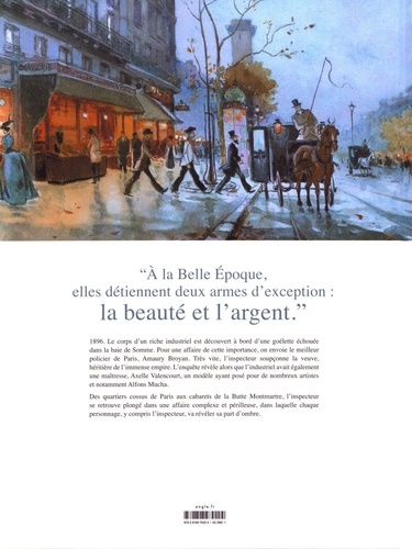 A la Belle Epoque, elles détiennent deux armes d'exception : la beauté et l'argent. . 1896. Le corps d'un riche industriel est découvert à bord d'une goélette échouée dans la baie de Somme. Pour une affaire de cette importance, on envoie le meilleur policier de Paris, Amaury Broyan. Très vite, l'inspecteur soupçonne la veuve, héritière de l'immense empire. L'enquête révèle alors que l'industriel avait également une maîtresse, Axelle Valencourt, un modèle ayant posé pour de nombreux artistes et notamment Alfons Mucha. Des quartiers cossus de Paris aux cabarets de la Butte Montmartre, l'inspecteur se retrouve plongé dans une affaire complexe et périlleuse, dans laquelle chaque personnage, y compris l'inspecteur, va révéler sa part d'ombre.