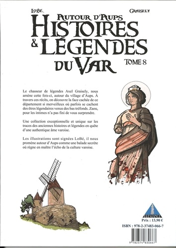 Une fois encore, Le chasseur de légendes Axel Graisely, passionné d'histoires populaires et de légendes, nous entraine cette fois-ci, autour du village d'Aups. Á travers son récit on découvre le souffle secret de ce département ensoleillé où se cachent des êtres légendaires parfois bien sombres mais d'une beauté toujours saisissante. Une collection exceptionnelle en quête de l'âme varoise et unique qui parle de nos rêves et de nos peurs ancestrales. Les illustrations sont signées LoBé, il nous promène autour d'Aups comme une balade secrète où règne en maître l'écho de la culture varoise... .
