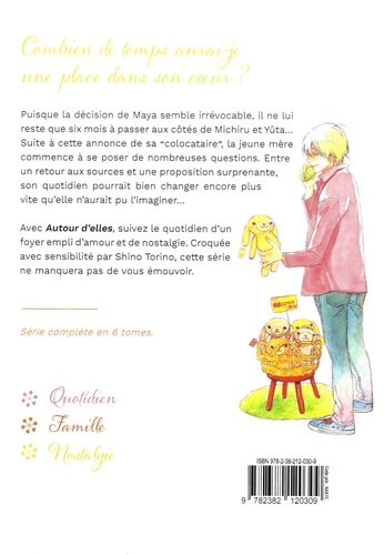 "Combien de temps aurai-je une place dans son coeur ? " Avec Autour d'elles , suivez le quotidien d'un foyer empli d'amour et de nostalgie. Croquée avec sensibilité par Shino Torino, cette série ne manquera pas de vous émouvoir Puisque la décision de Maya semble irrévocable, il ne lui reste que six mois à passer aux côtés de Michiru et Yûta... Suite à cette annonce de sa "colocataire', la jeune mère commence à se poser de nombreuses questions. Entre un retour aux sources et une proposition surprenante, son quotidien pourrait bien changer encore plus vite qu'elle n'aurait pu l'imaginer...