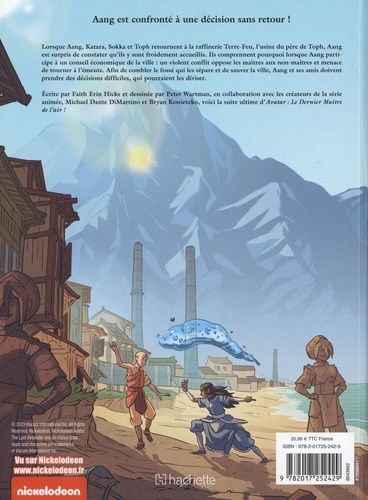 Katara et Sokka se battent pour l'avenir de la tribu de l'eau du Sud ! Lorsque Aang, Katara, Sokka et Toph retournent à la raffinerie Terre-Feu, l'usine du père de Toph, Aang est surpris de constater qu'ils y sont froidement accueillis. Ils comprennent pourquoi lorsque Aang participe à un conseil économique de la ville : un violent conflit oppose les maîtres aux non-maîtres et menace de tourner à l'émeute. Afin de combler le fossé qui les sépare et de sauver la ville, Aang et ses amis doivent prendre des décisions difficiles, qui pourraient les diviser.