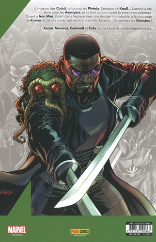 L'invasion des Cotati, le tournoi du Phénix, l'attaque de Knull... L'année a été dure pour les Avengers, et ils font le point avant la prochaine aventure. Quant à Iron Man, il part dans l'espace avec une équipe improbable, à la poursuite de Korvac et de ses sbires qui veulent prendre d'assaut... le vaisseau de Galactus ! Aaron, Maresca, Cantwell et Cafu signent trois épisodes imprévisibles.