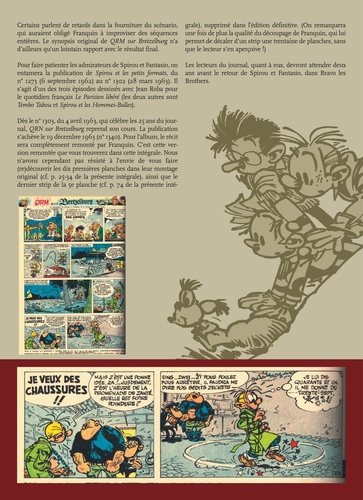 1961-1967, la réédition intégrale d'une des oeuvres majeures de la bande-dessinée. Toutes les aventures de Spirou et Fantasio dessinées par André Franquin, publiée pour la première fois dans l'ordre chronologique de leur création, agrémentées de documents rares et complétées de planches inédites. Ce huitième volume comprend les histoires suivantes : QRN sur Bretselburn ; Bravo les Brothers ; Les Robinsons du rail ; Panade à Champignac.