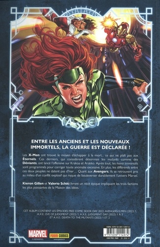 La guerre n'est que le commencement ! Quand les Eternels découvrent que les mutants sont en fait une forme de Déviants dont ils sont chargés de réguler la population, ils prennent la décision d'attaquer brutalement Krakoa et Mars. Les Avengers se retrouvent aussi impliqués dans le conflit opposant les Eternels et les X-Men dont les conséquences n'ont pas fini de faire trembler l'univers Marvel ! Le premier grand crossover de l'année 2023 est littéralement gigantesque, puisqu'il oppose les Avengers, les X-Men et les Eternels. Kieron Gillen (Eternals, Immortal X-Men) est aux commandes de cette épopée dont il signe quasiment tous les épisodes, y compris les nombreux tie-ins. La saga est bourrée de rebondissements et nous tiendra en haleine jusqu'au mois de juin.