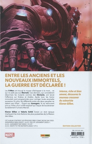 La guerre n'est que le commencement ! Quand les Eternels découvrent que les mutants sont en fait une forme de Déviants dont ils sont chargés de réguler la population, ils prennent la décision d'attaquer brutalement Krakoa et Mars. Les Avengers se retrouvent aussi impliqués dans le conflit opposant les Eternels et les X-Men dont les conséquences n'ont pas fini de faire trembler l'univers Marvel ! Le premier grand crossover de l'année 2023 est littéralement gigantesque, puisqu'il oppose les Avengers, les X-Men et les Eternels. Kieron Gillen (Eternals, Immortal X-Men) est aux commandes de cette épopée dont il signe quasiment tous les épisodes, y compris les nombreux tie-ins. La saga est bourrée de rebondissements et nous tiendra en haleine jusqu'au mois de juin.