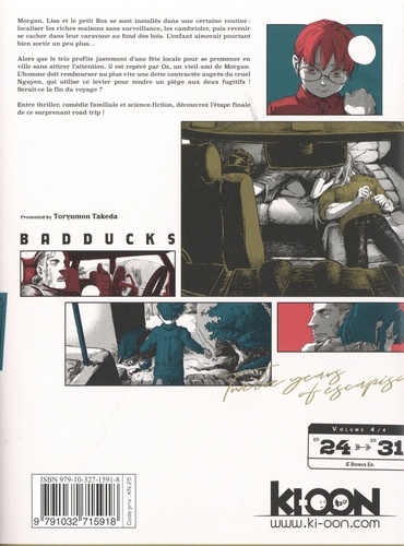 Morgan, Lisa et le petit Boz se sont installés dans une certaine routine : localiser les riches maisons sans surveillance, les cambrioler, puis revenir se cacher dans leur caravane au fond des bois. L'enfant aimerait pourtant bien sortir un peu plus... Alors que le trio profite justement d'une fête locale pour se promener en ville attirer l'attention, il est repéré par Oz, un vieil ami de Morgan. L'homme doit rembourser au plus vite une dette contractée auprès du cruel Nguyen, qui utilise ce levier pour tendre un piège aux deux fugitifs ! Serait-ce la fin du voyage ? Entre thriller, comédie familiale et science-fiction, découvres l'étape finale de ce surprenant road trip !