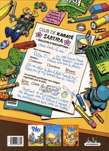 L'imagination de ce gamin ne prend jamais de repos ! Pilo se met au Karaté. Sa maman est ravie parce qu'il paraît que ça défoule et que ça a un effet relaxant. Pilo va enfin pouvoir canaliser son énergie. Mais avant de mettre un pied sur le tatami, il faut aller chez le médecin pour un check-up et un certificat médical, puis prendre la direction du forum des associations pour inscrire Pilo au club et enfin acheter un kimono au magasin de sport. Autant de mini aventures pour ce petit garçon à l'imagination sans limite qui va découvrir qu'un peu de sagesse, ça a du bon.