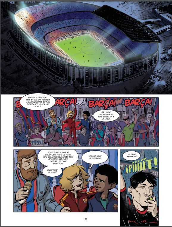 Grote Voetbalclubs in Europa! Een drieluik over Barcelona F.C. ! In de nieuwe Sportcollectie van Dupuis met verhalen van de grote clubs in Europa verschijnt een drieluik over de Engelse voetbalclub Arsenal F.C. Ideaal voor alle sportliefhebbers en stripfans van deze club en voetbal in het algemeen. Barça: meer dan voetbal alleen, de echte waarden in het leven, in en rond de mythische Catalaanse club. Avonturen waarin werkelijkheid en fictie in elkaar overvloeien, rond voetbalclub Barcelona. Quim, een kind uit Vilanova, en Manu, een Kameroener uit Douala, zijn twee jongens van twaalf jaar die voor een jeugdploeg spelen bij ‘la Masia’, de voetbalacademie van FC Barcelona. Een verhaal over vriendschap tussen twee erg verschillende kinderen, die door voetbal worden verenigd. Een jaar volgen we hen en leven we mee met de beproevingen die ze op hun weg tegenkomen: Quim heeft scoliose en Manu heeft heimwee naar zijn familie in Kameroen – alleen zijn vader is meegereisd naar Barcelona. We zien hoe de waarden van ‘la Masia’ (respect, bescheidenheid, hard werk, samenwerken) de jongeren helpen om volwassen beslissingen te nemen.