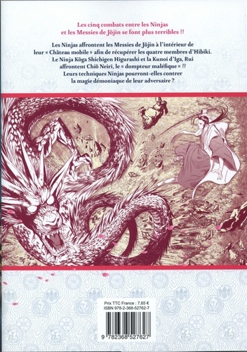 Les cinq combats entre les Ninjas et les Messies de Jôjin se font plus terribles !! Les Ninjas affrontent les Messies de Jôjin à l'intérieur de leur "Château mobile" afin de récupérer les quatre membres d'Hibiki. Le Ninja Kôga Shichigen Higurashi et la Kunoi d'Iga, Rui affrontent Chiô Neiri, le "dompteur maléfique" !! Leurs techniques Ninjas pourront-elles contrer la magie démoniaque de leur adversaire ?