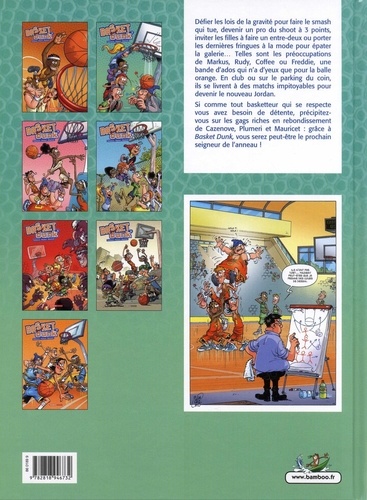 La BD pour être bien dans son basket ! Défier les lois de la gravité pour faire le smash qui tue, devenir un pro du shoot à 3 points, inviter les filles à faire un entre-deux ou porter les dernières fringues à la mode pour épater la galerie... Telles sont les préoccupations de Markus, Rudy, Coffee ou Freddie, une bande d'ados qui n'ont d'yeux que pour la balle orange. En club ou sur le parking du coin, ils se livrent à des matchs impitoyables pour devenir le prochain seigneur de l'anneau.