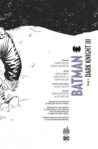 La dernière charge du Batman est proche, et que tremblent tous ceux qui s'y opposeront… Frank Miller, assisté au scénario par Brian Azzarello, débute son troisième cycle des aventures du Dark Knight. Dessinée principalement par Andy Kubert et Klaus Janson, cette nouvelle mini-série aborde à nouveau la place des surhommes dans un monde à la dérive qui les craint autant qu'il les vénère. Chaque chapitre est complété par une histoire de complément explorant cet Univers si singulier, dessinée à chaque numéro par un artiste de renom. La dernière charge du Batman est proche, et que tremblent tous ceux qui s'y opposeront… Contient : Dark Knight The Master Race #3 + #4.