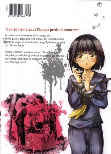 Tous les membres de l'équipe perdante mourront. La chasse au roi, le wargame où l'on joue sa vie... Tandis qu'Akira et l'équipe verte mènent des combats mortels contre les rouges, ils ne se doutent pas qu'ils côtoient un traître qui cible leur leader ! Alliances, trahisons, duperies, tueries... Dans cette guerre effroyable qui redouble de violence, les desseins des ennemis et des alliés sont de plus en plus complexes, et le sang coule pour laver celui déjà versé !