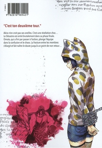Akira n'en croit pas ses oreilles. C'est une révélation choc... Le Désastre est entré brutalement dans sa phase finale. Omoto, qui a fini par passer à l'action, plonge l'équipe dans la confusion et le chaos. La fracture entre les membres s'élargit et fait naître le doute jusqu'à un point de non retour...