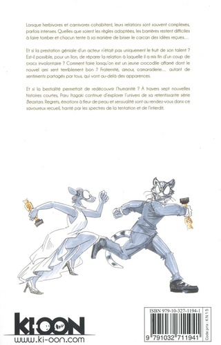 Découvrez les origines du monde fascinant de Beastars ! Dans la cohabitation entre herbivores et carnivores, les relations inter-espèces sont souvent complexes, parfois intenses. Quelles que soient les règles adoptées, les barrières restent difficiles à faire tomber, et chacun tente à sa manière de faire voler en éclat le carcan des idées rec ? ues. Un lion peut-il créer un lien avec une chauve-souris dont les parents ont été dévorés par un de ses pairs ? Qu'adviendra-t-il de l'amitié entre un petit tigre et un enfant castor quand ils grandiront ? A quoi ressemble une relation entre un dromadaire et une louve, où désir sensuel et appétit carnivore s'entremêlent ? Fraternité, amour, camaraderie... Autant de sentiments partagés par tous, qui permettent de voir au-delà des apparences. Et si la bestialité permettait de redécouvrir l'humanité ? A travers six histoires courtes passionnantes, Paru Itagaki pose les bases de l'univers de sa retentissante série Beastars. Tout y est : le campus mixte, le marché clandestin, les tabous sociétaux, et surtout, les personnages attachants qui échappent à tous les clichés... Beast Complex, première publication d'une jeune autrice au talent incroyable, est un concentré de ce qui fait la saveur de son oeuvre !