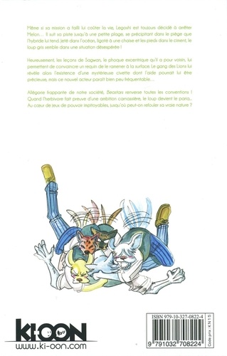Au milieu des haines et des peurs viscérales, qui s'emparera du trône du Beastar ? Même si sa mission a failli lui coûter la vie, Legoshi est toujours décidé à arrêter Melon... Il suit sa piste jusqu'à une petite plage, se précipitant dans le piège que l'hybride lui tend. Jeté dans l'océan, ligoté à une chaise et les pieds dans le ciment, le loup gris semble dans une situation désespérée ! Heureusement, les leçons de Sagwan, le phoque excentrique qu'il a pour voisin, lui permettent de convaincre un requin de le ramener à la surface. Le gang des Lions lui révèle alors l'existence d'une mystérieuse civette dont l'aide pourrait lui être précieuse, mais ce nouvel acteur paraît bien peu fréquentable...
