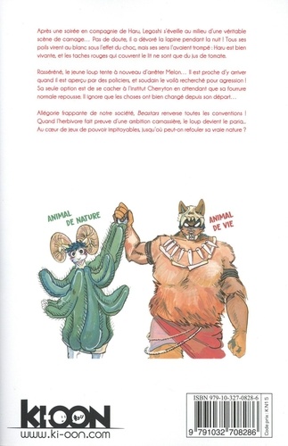 Au milieu des haines et des peurs viscérales, qui s'emparera du trône du Beastar ? Après une soirée en compagnie de Haru, Legoshi s'éveille au milieu d'une véritable scène de carnage... Pas de doute, il a dévoré la lapine pendant la nuit ! Tous ses poils virent au blanc sous l'effet du choc, mais ses sens l'avaient trompé : Haru est bien vivante, et les taches rouges qui couvrent le lit ne sont que du jus de tomate. Rasséréné, le jeune loup tente à nouveau d'arrêter Melon... Il est proche d'y arriver quand il est aperçu par des policiers, et soudain le voilà recherché pour agression ! Sa seule option est de se cacher à l'institut Cherryton en attendant que sa fourrure normale repousse. Il ignore que les choses ont bien changé depuis son départ...