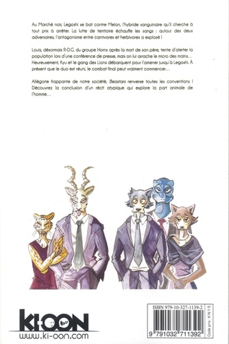 Au Marché noir, Legoshi se bat contre Melon, l'hybride sanguinaire qu'il cherche à tout prix à arrêter. La lutte de territoire échauffe les sangs : autour des deux adversaires, l'antagonisme entre carnivores et herbivores a explosé ! Louis, désormais P.D.G du groupe Horns après la mort de son père, tente d'alerter la population lors d'une conférence de presse, mois on lui arrache le micro des mains... Heureusement, Kyu et le gang des Lions débarquent pour l'amener jusqu'à Legoshi. A présent que le duo est réuni, le combat final peut vraiment commencer...