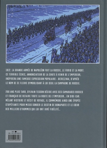 Deux siècles après la retraite de Russie, Sylvain Tesson refait la route de l'armée napoléonienne déchue... en side-car et en plein hiver. Ils sont cinq : trois Français et deux Russes. Unis par l'amitié et par un grand défi, ils décident de commémorer à leur façon le bicentenaire de la retraite de Russie : en suivant le chemin emprunté par les troupes françaises en pleine débâcle. Partis de Moscou, Sylvain Tesson et ses amis traversent l'immense Russie, la Biélorussie, la Pologne et l'Allemagne, faisant route vers Paris au guidon de leurs Oural, ces side-cars russes réputés indestructibles. En chemin, ils franchissent le fleuve Berezina, devenu au fil du temps un nom commun pour désigner les échecs les plus cuisants... Porté par la langue et l'esprit d'aventure de Sylvain Tesson, le plus fameux des écrivains voyageurs contemporains, ce récit au long cours est de nouveau dessiné par Virgile Dureuil (déjà auteur en 2019 de Dans les forêts de Sibérie en bande dessinée). A travers les multiples allers-retours entre le XIXe et le XXIe siècle, un incroyable épisode de l'histoire française est ici revisité.