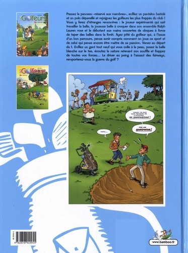 Passez le panneau "réservé aux membres", enfilez un pantalon bariolé et un polo dépareillé et rejoignez les golfeurs les plus frappés du club ! Vous y ferez d'étranges rencontres : le joueur expérimenté qui sait travailler la balle, la joueuse belle à croquer dans son ensemble Ralph Lauren rose et le débutant aux mains couvertes de cloques à force de taper des balles dans la forêt. Ayez pitié du golfeur qui, à l'issue d'un bon parcours, pense avoir compris comment on joue ce sport et de celui qui pense encore être maître de sa passion. Venez au départ du 1. Enfilez un gant tout neuf qui vous colle à la peau, posez la balle blanche sur le tee, écoutez la nature retenant son souffle et frappez de toutes vos forces... Le driver au poing à l'assaut des fairways, remporterez-vous la guerre du golf ?