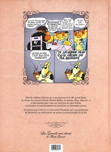 Afin de célébrer l'oeuvre de ce monument de la BD qu'est Binet, la crème des auteurs Fluide Glacial (Edika, Goossens, Tebo, Fabcaro...) a sélectionné pour vous ses histoires les plus drôles, touchantes et représentatives du travail de cet immense auteur. Ne passez pas à côté de ce concentré d'humour qui vous permettra de découvrir ou redécouvrir un auteur incontournable de la BD.