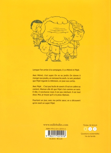 Aujourd'hui tout le monde est là : Pépé et Mémé, bien sûr, mais aussi papa, maman, ma petite- soeur… et tonton. Lui, je l'adore, surtout lorsqu'il propose de faire une partie de foot dans le jardin. – Attention à mes tomates ! grogne Pépé.– Hé bien, biquet, répond tonton avec un large sourire, On a oublié ses heures de gloire ? Moi, je n'y comprends rien. De quoi tonton parle-t-il ? Et surtout, pourquoi appelle-t-il Pépé «biquet» ? Alors Pépé est allé chercher un vieux film dans lequel on le voit jouer au foot quand il était jeune. Tout jeune, sans même un cheveu blanc. Il courait si vite que tout le monde l'appelait «Biquet». Les pépés aussi ont été jeunes, je n'y avais jamais vraiment réfléchi ! Dans la foulée, on a fait une partie de foot avec lui. Pépé courait beaucoup moins vite que dans le film. Mais peut-être un peu trop vite quand même… Dans la nuit, les pompiers l'ont emmené à l'hôpital. Je me demande si c'est à cause de la partie de foot ? À cause de moi ? Mémé dit juste que c'est à cause du coeur de Pépé. A partir de 7 ans.