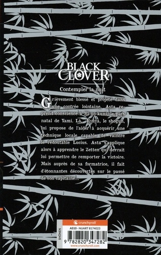 Grièvement blessé et projeté dans une contrée lointaine, Asta re- prend conscience à Hi-no-kuni, le pays natal de Yami. Là, Ryûya, le shogun, lui propose de l'aider à acquérir une technique locale capable de vaincre le redoutable Lucius. Asta s'applique alors à apprendre le Zetten qui devrait lui permettre de remporter la victoire. Mais auprès de sa formatrice, il fait d'étonnantes découvertes sur le passé de son capitaine...