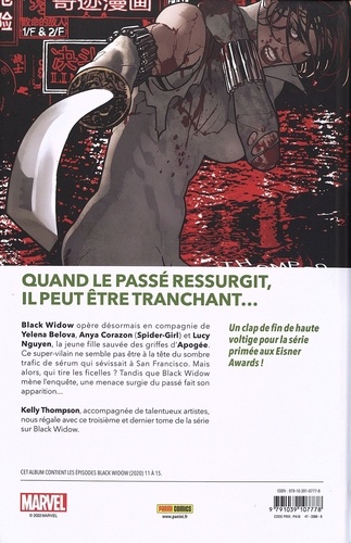 Black Widow opère désormais en compagnie de Yelena Belova, Anya Corazon (Spider-Girl) et Lucy Nguyen, la jeune fille sauvée des griffes d'Apogée. Ce super-vilain en semble pas être à la tête du sombre trafic de sérum qui sévissait à San Francisco. Mais alors, qui tire les ficelles ? Tandis que Black Widow mène l'enquête, une menace surgie du passé fait son apparition... Kelly Thompson, accompagnée de talentueux artistes, nous régale avec ce troisième et dernier tome de la série sur Black Widow.