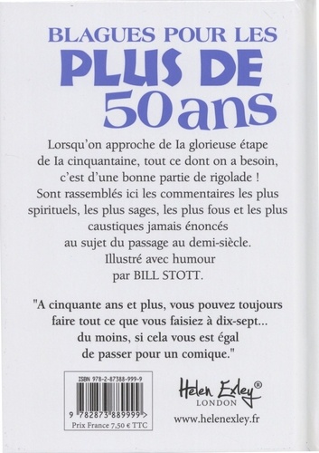 Lorsqu'on approche de la glorieuse étape de la cinquantaine, tout ce dont on a besoin, c'est d'une bonne partie de rigolade ! Sont rassemblés ici les commentaires les plus spirituels, les plus sages, les plus fous et les plus caustiques jamais énoncés au sujet du passage au demi-siècle. Illustré avec humour par Bill Stott.
