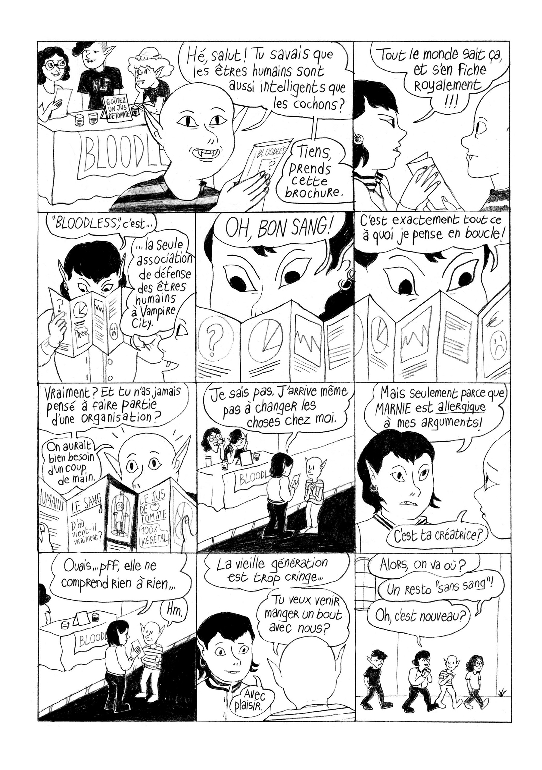 Tout commence lorsque Sophie rencontre les fondateurs de Bloodless, un groupe de jeunes vampires militant pour la défense des êtres humains. Ensemble, ils décident de s'introduire illégalement dans une "ferme à sang". Une action choc pour dénoncer les conditions de production industrielle d'hémoglobine. Mais, la situation leur échappe et un "petit" imprévu est sur le point de semer la pagaille à Vampire City.