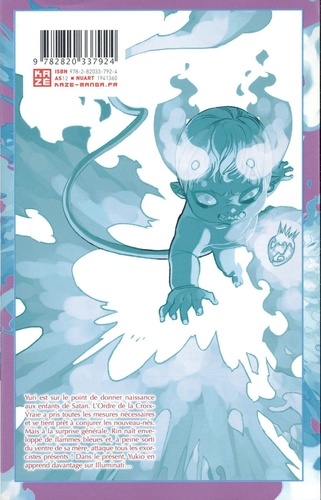 Yuri est sur le point de donner naissance aux enfants de Satan. L'Ordre de la Croix-Vraie a pris toutes les mesures nécessaires et se tient prêt à conjurer les nouveau-nés. Mais à la surprise générale, Rin naît enveloppé de flammes bleues et, à peine sorti du ventre de sa mère, attaque tous les exorcistes présents ! Dans le présent, Yukio en apprend davantage sur Illuminati...