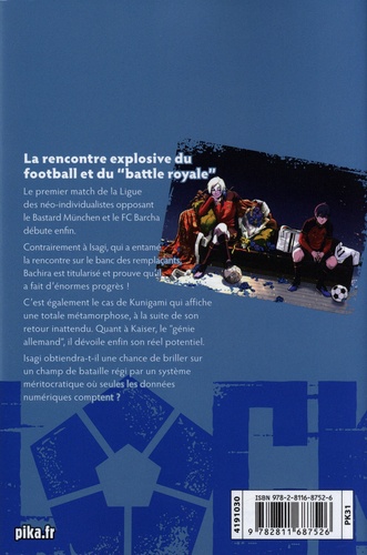 Le premier match de la Ligue des néo-individualistes opposant le Bastard München et le FC Barcha débute enfin. Contrairement à Isagi, qui a entamé la rencontre sur le banc des remplaçants, Bachira est titularisé et prouve qu'il a fait d'énormes progrès ! C'est également le cas de Kunigami qui affiche une totale métamorphose, à la suite de son retour inattendu. Quant à Kaiser, le "génie allemand", il dévoile enfin son réel potentiel. Isagi obtiendra-t-il une chance de briller sur un champ de bataille régi par un système méritocratique où seules les données numériques comptent ?