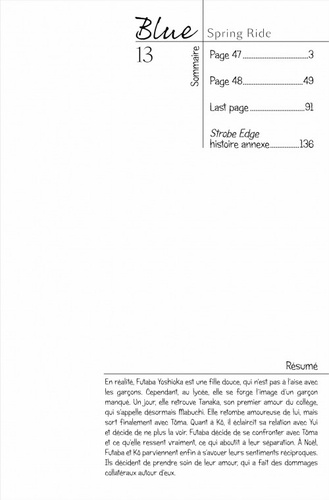 Et si nous prenions un nouveau départ... Futaba et Kô sont enfin ensemble. Les relations entre Shûko, Kominato et le professeur Tanaka prennent également une nouvelle tournure... Kô va prendre une grande décision. Voici le dernier volume d'une histoire d'amour de jeunesse vécue avec passion ! !