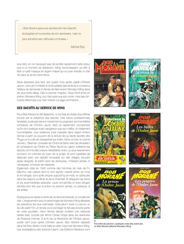 Polytechnicien, polyglotte, ex-commandant d'aviation, bourlingueur au grand coeur, séducteur, Bob Morane traque le mal sous toutes ses formes et sous toutes les latitudes. Et il peut toujours compter sur l'aide de son plus fidèle ami, le colosse écossais Bill Balantine... Comprend 5 tomes de la série d'origine, enfin réédités, scénarisés par Vernes et dessinés par Vance : Les Yeux du Brouillard, Les Poupées de l'Ombre Jaune, Les Sept Croix de plomb, Guerilla à Tumbaga et La Prisonnière de l'Ombre Jaune.