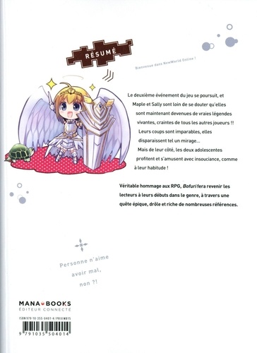 Personne n'aime avoir mal, non ? ! Le deuxième événement du jeu se poursuit, et Maple et Sally sont loin de se douter qu'elles sont maintenant devenues de vraies légendes vivantes, redoutées de tous les autres joueurs ! Leurs coups sont imparables, elles disparaissent tel un mirage... Mais de leur côté, les deux adolescentes profitent et s'amusent avec insouciance, comme à leur habitude... Véritable hommage aux RPG, Bofuri fera revenir les lecteurs à leurs débuts dans le genre, à travers une quête épique, drôle et riche de nombreuses références.
