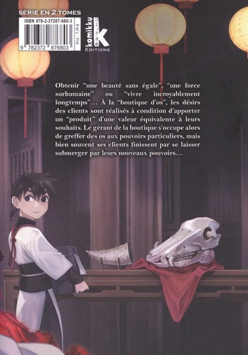 Attention à ce que vous désirez... Obtenir "une beauté sans égale', "une force surhumaine' ou "vivre incroyablement longtemps'... A la "boutique d'os', les désirs des clients sont réalisés à condition d'apporter un "produit' d'une valeur équivalente à leurs souhaits. Le gérant de la boutique s'occupe alors de greffer des os aux pouvoirs particuliers, mais bien souvent ses clients finissent par se laisser submerger par leurs nouveaux pouvoirs...