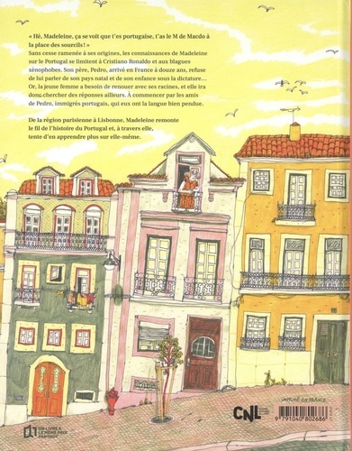 " Hé, Madeleine, ça se voit que t'es portugaise, t'as le M de Macdo à la place des sourcils ". Sans cesse ramenée à ses origines, les connaissances de Madeleine sur le Portugal se limitent à Cristiano Ronaldo, aux blagues xénophobes sur les " Guesh " et à la langue, tout de même, que son père lui a transmise. Mais ce dernier qui est arrivé en France à douze ans refuse obstinément de parler de son pays natal et de son enfance sous la dictature... Résultat, c'est à peine si Madeleine sait que Salazar était un dictateur et pas seulement un méchant sorcier dans Harry Potter. Mais la jeune femme a besoin de renouer avec ses racines, et si son père ne veut pas parler, elle ira chercher des réponses ailleurs. A commencer par les amis de ce dernier, immigrés portugais, qui eux ont la langue bien pendue. De la région parisienne à Lisbonne, Madeleine recueille leurs récits de vie. Peu à peu, elle remonte le fil de l'histoire du Portugal et, à travers elle, tente d'en apprendre plus sur elle-même.