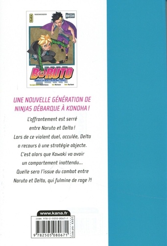Une nouvelle génération de ninjas débarque à Konoha ! L'affrontement est serré entre Naruto et Delta ! Lors de ce violent duel, acculée, Delta a recours à une stratégie abjecte. C'est alors que Kawaki va avoir un comportement inattendu... Quelle sera l'issue du combat entre Naruto et Delta, qui fulmine de rage ? !