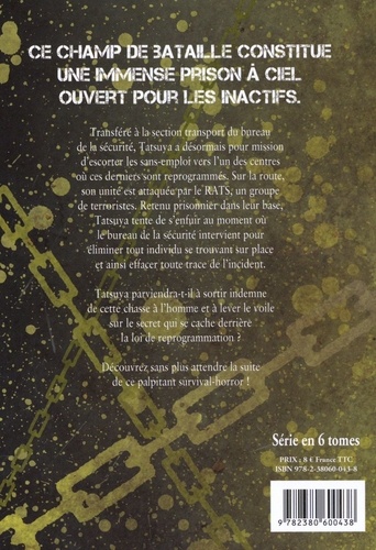 Transféré à la section transport du bureau de la sécurité, Tatsuya a désormais pour mission d'escorter les sans-emploi vers l'un des centres où ces derniers sont reprogrammés. Sur la route, son unité est attaquée par le RATS, un groupe de terroristes. Retenu prisonnier dans leur base, Tatsuya tente de s'enfuir au moment où le bureau de la sécurité intervient pour éliminer tout individu se trouvant sur place et ainsi effacer toute trace de l'incident. Tatsuya parviendra-t-il à sortir indemne de cette chasse à l'homme et à lever le voile sur le secret qui se cache derrière la loi de reprogrammation ? Découvrez sans plus attendre la suite de ce palpitant survival-horror !