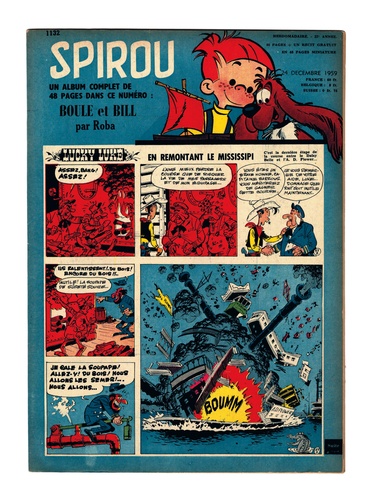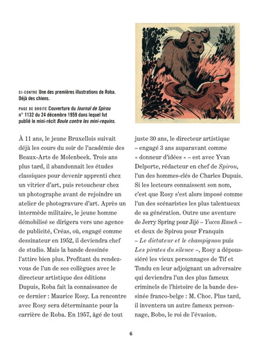 Les tout premiers pas de Boule et Bill dans Le journal de Spirou. Le 24 décembre 1959, deux nouveaux venus s'installent dans les pages du Journal de Spirou : Boule et Bill, car il s'agit bien d'eux, font leurs premiers pas sous la plume de Rosy et le pinceau de Roba, dans le mini-récit Boule et Bill contre les mini-requins que la présente édition propose de redécouvrir.