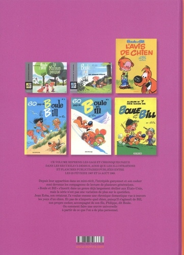 Derrière Boule et Bill, cette série culte que chacun croit connaître, se cache une véritable oeuvre d'auteur, où l'autobiographie imprègne toutes les pages. Jean Roba s'est inspiré de sa propre vie de famille pour raconter ces chroniques familiales, observant son fils et Bill, leur cocker, et prenant, à la volée, des instants malicieux que son imaginaire s'empressait de transformer en saynètes. Ce volume de 264 pages reprend les gags des tomes 9 à 11 de Boule et Bill, complétés par des illustrations humoristiques en couleur, des planches publicitaires inédites, une quinzaine de chroniques L'Avis de chien de Bill, deux contes publiés dans la collection du " Carrousel " illustrés par de magnifiques gouaches, écrits par Yvan Delporte et Charles Degotte. Cette édition est complétée d'une introduction de 40 pages pour contextualiser l'oeuvre et présenter des documents d'archives inédits.