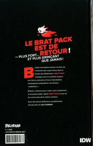 Bombe incendiaire lancée à la face de l'industrie des super-héros dans la foulée des Watchmen, Brat Pack s'attaque sans le moindre respect aux héros costumés et leurs improbables compagnons prépubères, les fameux " sidekicks "... Brillant, irrévérencieux, trash, sans compromis... et incontournable. Après Brat Pack, vous ne les verrez plus de la même manière. Avec des bonus éditoriaux exceptionnels.