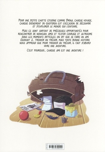 Pour une petite chatte citadine comme Brina, chaque voyage, chaque évènement du quotidien est l'occasion de découvrir et d'explorer le monde qui l'entoure. Mais ce sont surtout de précieuses opportunités pour rencontrer de nouveaux amis et tester courage et altruisme dans les moments difficiles. On dit que se faire un ami équivaut à... trouver un trésor, mais toute bonne histoire nous apprend que pour trouver un trésor, il faut d'abord vivre une aventure. C'est pourquoi... chaque ami est une aventure !
