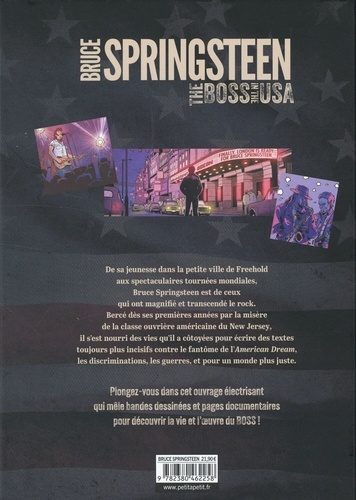 De sa jeunesse dans la petite ville de Freehold aux spectaculaires tournées mondiales, Bruce Springsteen est de ceux qui ont magnifié et transcendé le rock. Bercé dès ses premières années par la misère de la classe ouvrière américaine du New Jersey, il s'est nourri des vies qu'il a côtoyées pour écrire des textes toujours plus incisifs contre le fantôme de l'Ameriean Dream, les discriminations, les guerres, et pour un monde plus juste. Plongez-vous dans cet ouvrage électrisant qui mêle bandes dessinées et pages documentaires pour découvrir la vie et l'oeuvre du BOSS !