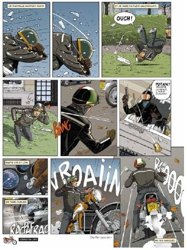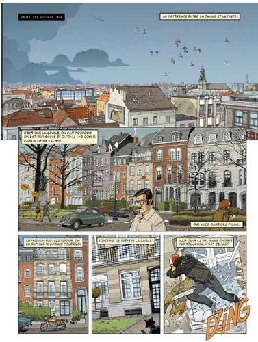 "La différence entre la cavale et la fuite, c'est que quand on cavale, on sait pourquoi on est recherché, on a une bonne raison de se cacher. J'ai vu ça dans des films... Lorsqu'on fuit, par contre, on ne sait pas toujours pourquoi. A choisir, je préfère la cavale ! Mais dans la vie, on ne choisit toujours, n'est-ce pas ?" Empruntant un style résolument vintage, Rider On The Storm se déroule en 1975, dans un Bruxelles en pleine mutation économique, architecturale et culturelle, faisant la part belle à ses lieux mythiques, au rock ainsi qu'à la moto.