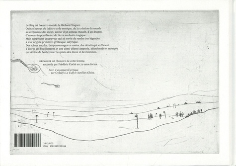 Le Ring est l'oeuvre-monde de Richard Wagner. Quinze heures de théâtre et de musique, de la création du monde au crépuscule des dieux, autour d'un anneau maudit, d'un dragon, d'amours impossibles et de héros au destin tragique. Mais supposons un graveur qui ait envie de rendre ces légendes à leur origine primitive, grotesque, satyrique. Des scènes en plus, des personnages en moins, des détails qui s'effacent, d'autres qui bouillonnent, et une demi-déesse amputée, abandonnée et trompée qui décide de bouleverser les plans des dieux et des hommes. Brynhildr est l'histoire de cette femme, racontée par Frédéric Coché en 72 eaux-fortes. Suivi d'un appareil critique par Gwladys Le Cuff et Aurélien Gleize.