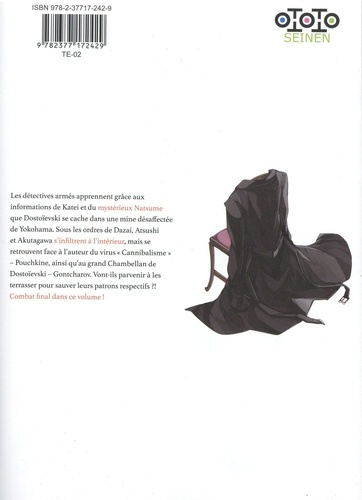 Les détectives armés apprennent grâce aux informations de Katei et du mystérieux Natsume que Dostoïevski se cache dans une mine désaffectée de Yokohama. Sous les ordres de Dazai, Atsushi et Akutagawa s'infiltrent à l'intérieur, mais se retrouvent face à l'auteur du virus "Cannibalisme" - Pouchkine, ainsi qu'au grand Chambellan de Dostoïevski - Gontcharov. Vont-ils parvenir à les terrasser pour sauver leurs patrons respectifs ? ! Combat final dans ce volume !