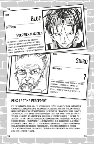 Arrivés à Sunshine City, la ville des dompteurs, Keel et ses compagnons rencontrent un étrange vieillard nommé Shiro. Ils sont abasourdis par les révélations du vieil homme sur les mélodies magiques et les reliques sacrées. Mais ils ne tardent pas à être attaqués par Kurokiri, un membre haut placé de la mystérieuse organisation Ayakashi ! Suivez les péripéties de Keel et de ses compères dans ce troisième volume aux aventures et aux combats palpitants ! Burst !!