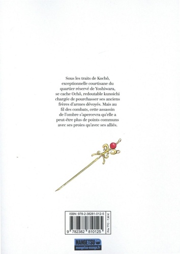 1635, en plein coeur de l'ère Edo. Kochô, femme de plaisir, est particulièrement reconnue dans le célèbre quartier de Yoshiwara, haut lieu des plaisirs de la chair de la capitale nippone. Ce que ses clients ne savent pas, c'est que Kochô est également une kunoichi (une shinobi) et poursuit une quête de vengeance qui devrait les pousser à revoir leurs manières et à ne pas lui confier trop de secrets sur l'oreiller. Suivez la passionnante Kochô dans cette double vie sulfureuse, au fil des planches et du scénario magnifiques de Yuka Nagate.